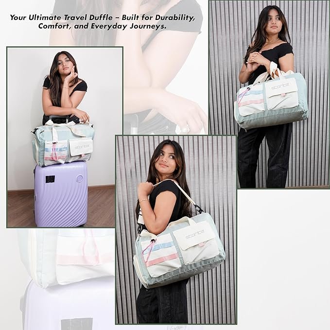 Storite Nylon 44 cms Imported Travel Duffle Bag Multi- Pocket Sports Shoulder Bag for Women with Wet Pocket & Shoe Compartment Weekender Overnight Travel Luggage Bag (Pista Green -44cmX31cmX17cm) -63% ₹949